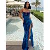 Elegant Stylish Fashion Summer Low-Cut Sexy Sling Lace-up Cutout Printed Sexy Sexy Split Dress