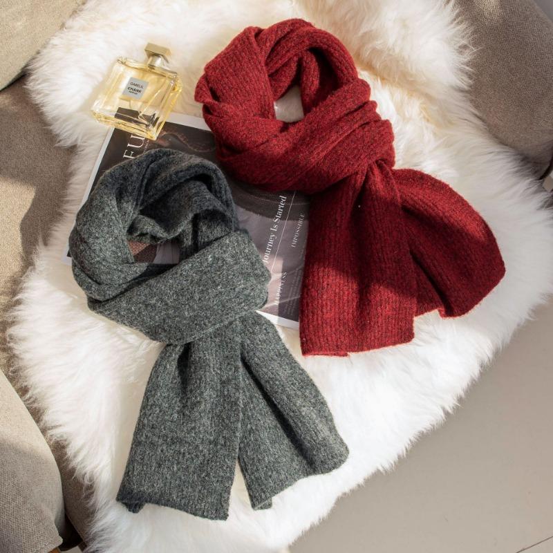 Korean Style Classic Woolen Scarf Solid Knitted Woman Men Scarves Autumn Winter Soft Warm Neck Wraps Couples Muffler Male Female