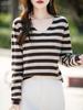 New Base Layer for Women's Spring and Autumn Design, V-neck Sweater, Striped Long-sleeved Knitted Sweater Top