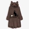 Women Fleece Embroidery Cat Ear Plus Size Hoodie Pocket Top Sweater Blouse