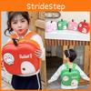 This children's mini backpack features a playful fruit pattern made from durable PU material. Its lightweight design and curved shoulder straps support comfortable wear for young children. Ideal for kindergarten daily use, it supports small items and easy organization. Wipe clean with a damp cloth for maintenance.