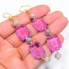 Copper Purple Turquoise & Pink Kunzite 925 Sterling Silver Black And Gold Rhodium Plated Earring 2.34" Sku2, Purple Earring, Natural Gemstone Earring