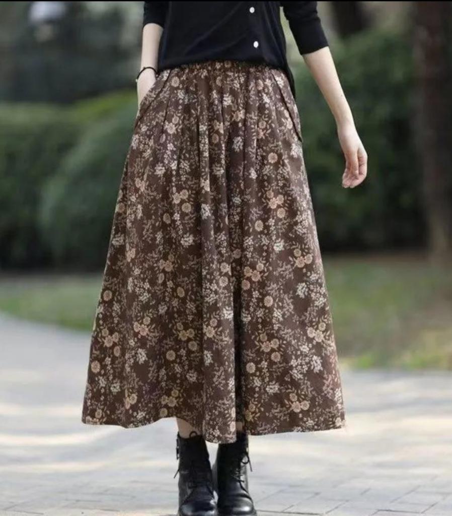 Юбка с цветочным принтом больших размеров, женская весенне-летняя юбка А-силуэта в стиле ретро, юбка средней длины с высокой талией
