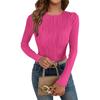 Women's Fashion Ribbed Solid Color V-neck Slim Long-sleeved T-shirt Tops