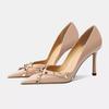 Fashion Beige High Heels Comfortable High-Heeled Shoes Roman Style Slip On Navy Blue Pumps All-Match Rivets Patent Leather Sandals Ladie